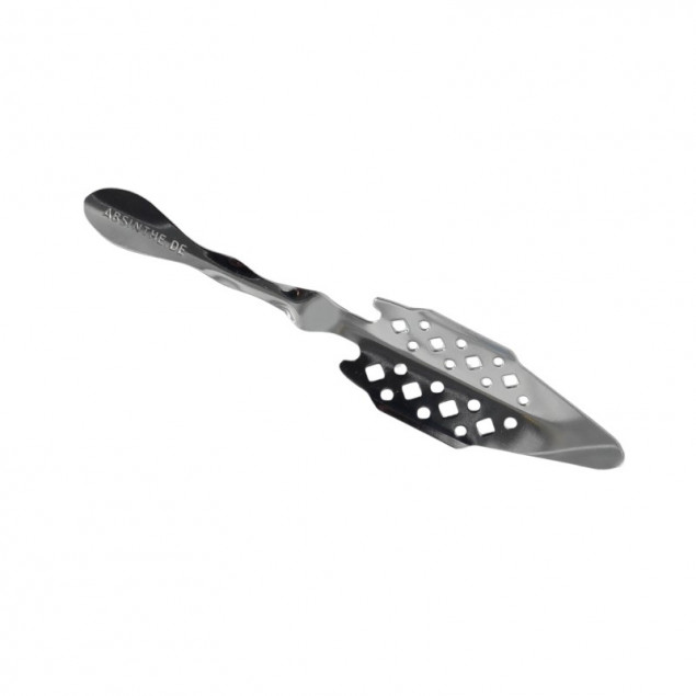 Der Absinth-Löffel, zum stilvollen genießen. Ideal für das Absith Ritual. Man positioniert den Absinthelöffel auf dem Glas und legt ein halbes bis ein ganzes Stück Würfelzucker auf den Löffel. Zunächst gießt man nur soviel Wasser auf den Zucker, daß dieser völlig getränkt ist. Dadurch wird er leicht porös und löst sich später leichter auf. Nach einer Weile gießen sie erneut Wasser über den Zucker ins Glas. Wenn sich der Zucker auflöst fahren Sie fort, bis das Glas zur gewünschten Höhe gefüllt ist. Sollte der Würfelzucker noch nicht völlig aufgelöst sein, können Sie ihn mit dem Absinthelöffel einfach im Glas verrühren.