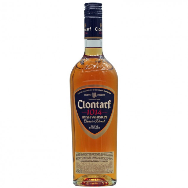 Clontarf 1014 Black Label  Classic Blend Irish Whiskey Clontarf 1014 ist ein Irischer Single Malt . Irische Whiskys bestehen vorwiegend aus Gerste, gemälzt oder ungemälzt, oder einer Mischung aus beidem. Die Iren trocknen das Malz meist in einem geschlossenen Ofen im Gegensatz zu den Schotten, bei denen das Malz größtenteils über offenem Torffeuer getrocknet wird. Daher auch der rauchigere und torfigere Charakter des schottischen Whiskys. Charakteristik Der Clontarf Black Label ist eine Kombination aus den schönsten irischen Grain-Whiskeys. TABLE.blueTable { HEIGHT: 400px; WIDTH: 100%; BORDER-COLLAPSE: collapse; TEXT-ALIGN: left; BACKGROUND-COLOR: #fffefb } TABLE.blueTable TD { PADDING-BOTTOM: 8px; PADDING-TOP: 8px; PADDING-LEFT: 8px; PADDING-RIGHT: 8px } TABLE.blueTable TH { PADDING-BOTTOM: 8px; PADDING-TOP: 8px; PADDING-LEFT: 8px; PADDING-RIGHT: 8px } TABLE.blueTable TBODY TD { FONT-SIZE: 16px; FONT-WEIGHT: bold BACKGROUND: #EEEEEE } TABLE.blueTable THEAD { BACKGROUND: #333333 } TABL…