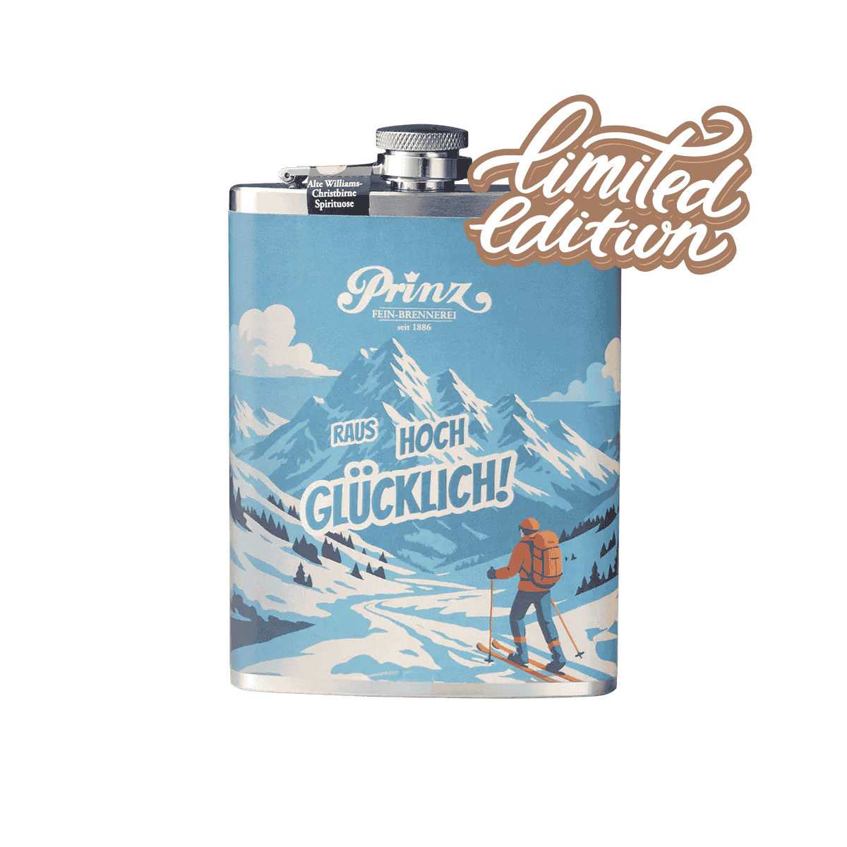 Edelstahl-Flachmann mit Alter Williams-Christbirne 41% vol
