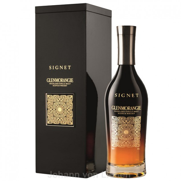 Glenmorangie Signet Der Glenmorangie Single Malt Whisky ist der Beweis einer genialen, traditionsreichen Brennkunst mit allerhöchstem Anspruch. Hier kommen die ältesten und seltensten Whiskys mit den High Rosted Chocolate Malts zusammen. Das Resultat ist ein einzigartiger Premium-Whisky mit einem sagenhaften Aroma von außergewöhnlicher Intensität.   Ein bisschen über Glenmorangie Die in den nördlichen Highlands von Schottland gelegene Brennerei Glenmorangie ist bekannt dafür, dass sie besonders malzige, bitter-süße Whiskys hervorbringt, die unter den Whiskyliebhabern so beliebt sind. Dabei spielen verschiedene Faktoren eine Rolle: die Nähe zum Meer, das harte, mineralhaltige Wasser ihrer hauseigenen Quelle und die hohen, schwanenhalsförmigen Brennblasen – die höchsten in ganz Schottland. Mit dem 2008 erstmals auf dem Markt erschienenen Glenmorangie Signet Single Malt ist der 1843 gegründeten Destillerie, derzeit die Nr. 5 auf dem Weltmarkt, ein wahres Meisterwerk gelungen. Das spiegelt…