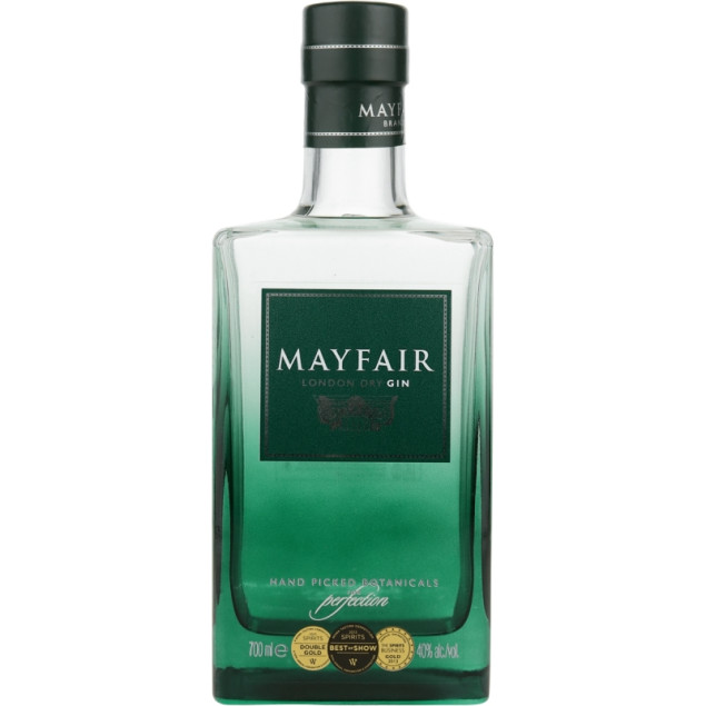 Mayfair London Dry Gin Rubrik: Gin Ursprungsland: England Nettofüllmenge: 0,7 Liter Alkoholgehalt: 40% vol. Zusatzstoffe: – Loskennzeichnung: ja Warnhinweise: Abgabe nicht an Jugendliche unter 18 Jahren Nicht für schwangere oder stillende Frauen empfohlen Name und Adresse des Herstellers / Importeurs: Mayfair Brands Ltd. 26 Grosvenor Street, London, W1K 4QW Der Mayfair London Dry Gin hat schon viele Preise abgeräumt. Das kann man direkt auf der Vorderseite der besonders schönen Flasche erkennen, denn dort sind einige Medaillen abgebildet. Charakteristik: Der Mayfair London Dry Gin duftet nach Wacholder und Kräutern. Im Mund dominieren die Gewürze, ohne aber aufdringlich zu sein. Oft wird der Mayfair London Dry Gin als Gin-Tonic genossen.