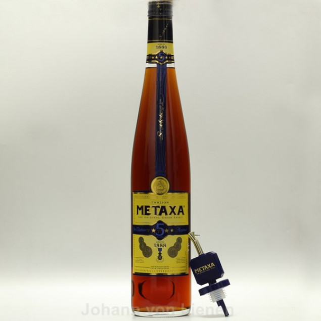 Metaxa 5* Sterne Charakteristik: Metaxa Brandy – wer kennt ihn nicht, den berühmten Brandy aus Griechenland? Die 5 Sterne stehen dafür, daß er mindestents fünf Jahre in hochwertigen Eichenfässern gelagert wurde, wodurch er seine goldgelbe Farbe erhielt. Metaxa ist ein milder, fruchtiger und würziger Brandy. Er wurde benannt nach seinem Firmengründer Spyros Metaxa, der ihn 1887 mit seinen Brüdern erfunden hat. Metaxa Brandy in der Riesenflasche Die Riesenflasche ist ca. 57 cm hoch. Mit dabei ist ein passender Portionierer (siehe Bild). Einfach irre, der absolute Blickfang! TABLE.blueTable {HEIGHT: 400px; WIDTH: 100%; BORDER-COLLAPSE: collapse; TEXT-ALIGN: left; BACKGROUND-COLOR: #fffefb}TABLE.blueTable TD {PADDING-BOTTOM: 8px; PADDING-TOP: 8px; PADDING-LEFT: 8px; PADDING-RIGHT: 8px}TABLE.blueTable TH {PADDING-BOTTOM: 8px; PADDING-TOP: 8px; PADDING-LEFT: 8px; PADDING-RIGHT: 8px}TABLE.blueTable TBODY TD {FONT-SIZE: 16px; FONT-WEIGHT: bold}UNKNOWN {BACKGROUND: #eeeeee}TABLE.blueTable THEAD…