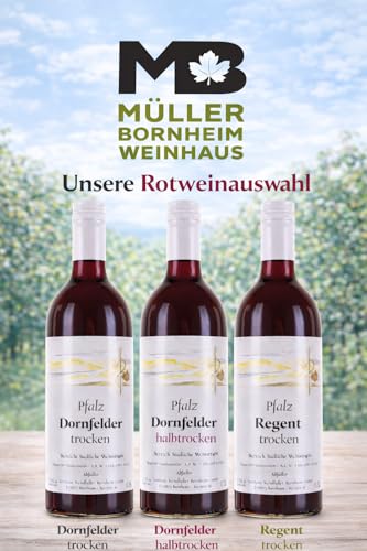 Weinhaus Müller Bornheim Regent Rotwein trocken Pfalz QbA – Deutscher Qualitätswein, kräftig & fruchtig, 0,75 l Flasche, 6er Karton