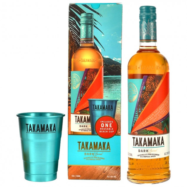 Takamaka Dark Spiced Geschenkset mit Beach Cup 0,7 L 38% vol