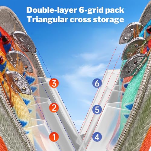 TIKATARER Angelköder-Wrap, 6-Taschen-Ködertasche, PVC-Schutzhülle, Salzwasser-Hakenabdeckungen, Stoff-Köderschutz mit Trolling-Design, Ideal Als...